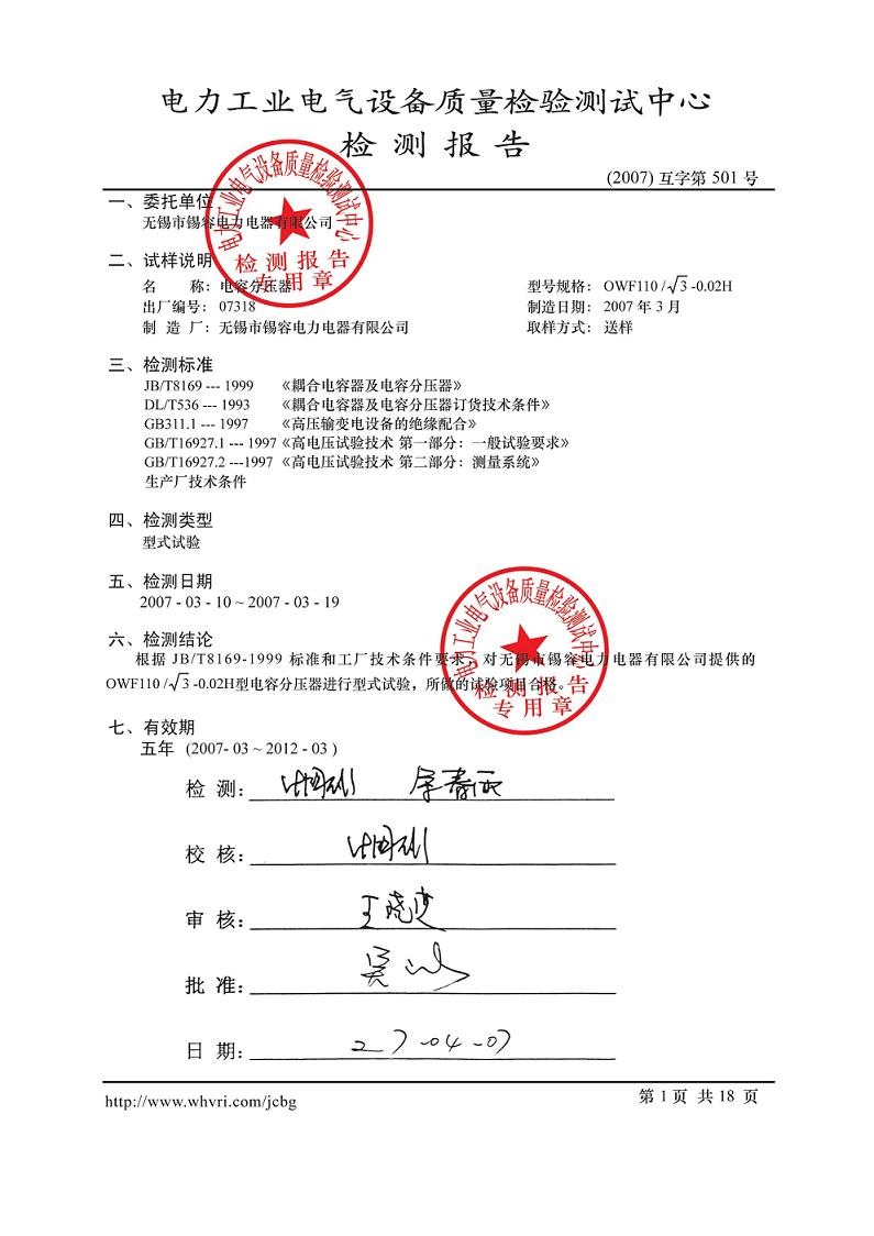 Test report release time:2020-07-20 04:02:47source:Wuxi Xirong Electric Appliance Co., Ltd.Click:1501