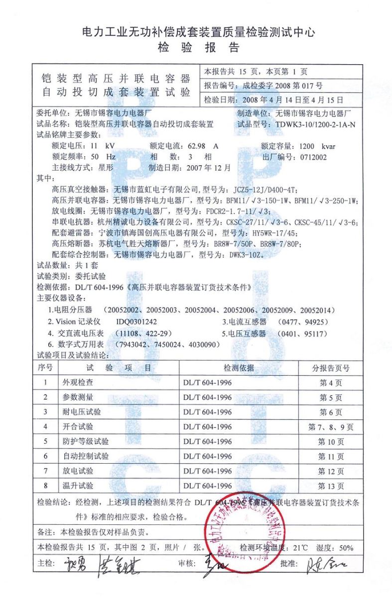 Test report release time:2020-07-20 04:06:13source:Wuxi Xirong Electric Appliance Co., Ltd.Click:1505