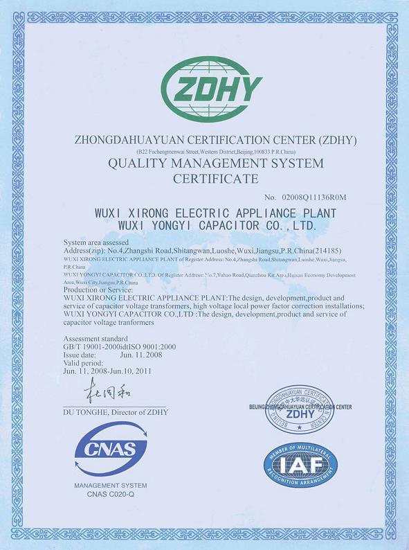 Qualification certificate release time:2020-07-20 04:20:36source:Wuxi Xirong Electric Appliance Co., Ltd.Click:1614