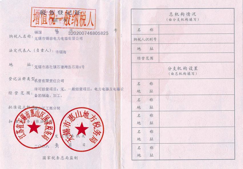 Tax registration certificate release time:2020-07-20 04:34:39source:Wuxi Xirong Electric Appliance Co., Ltd.Click:1729